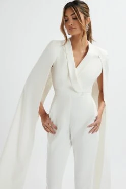RAYNA Longline Cape Tailored Jumpsuit In White