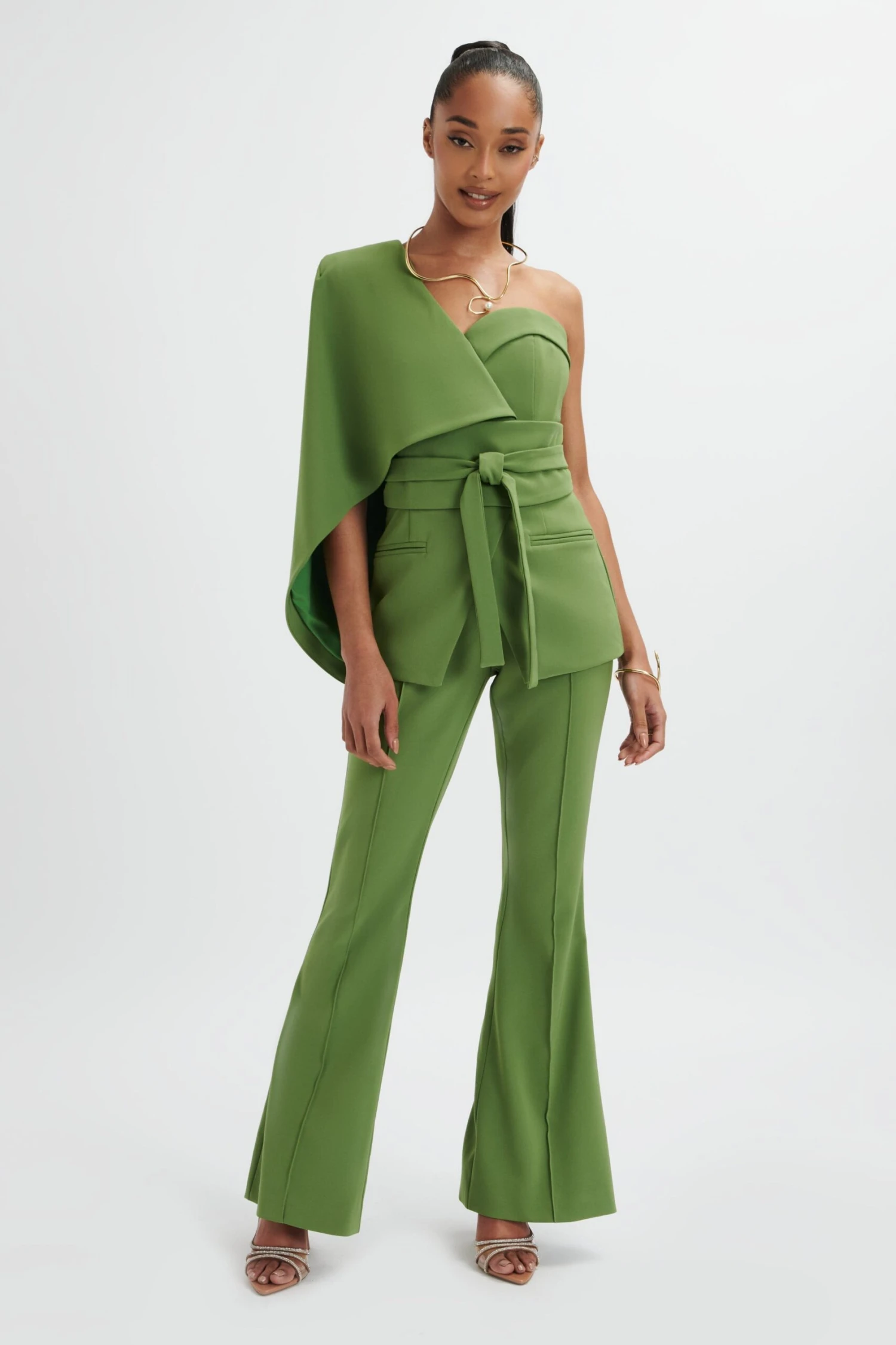 Expertly tailored in a premium crepe fabric, EMELIE in regal green offers a flattering fit and elongated silhouette. With side pockets, a centre front zip and hook & bar fastening, and a pin tuck detail at the centre leg, this trouser is both functional and stylish. Fully lined for a professional finish.