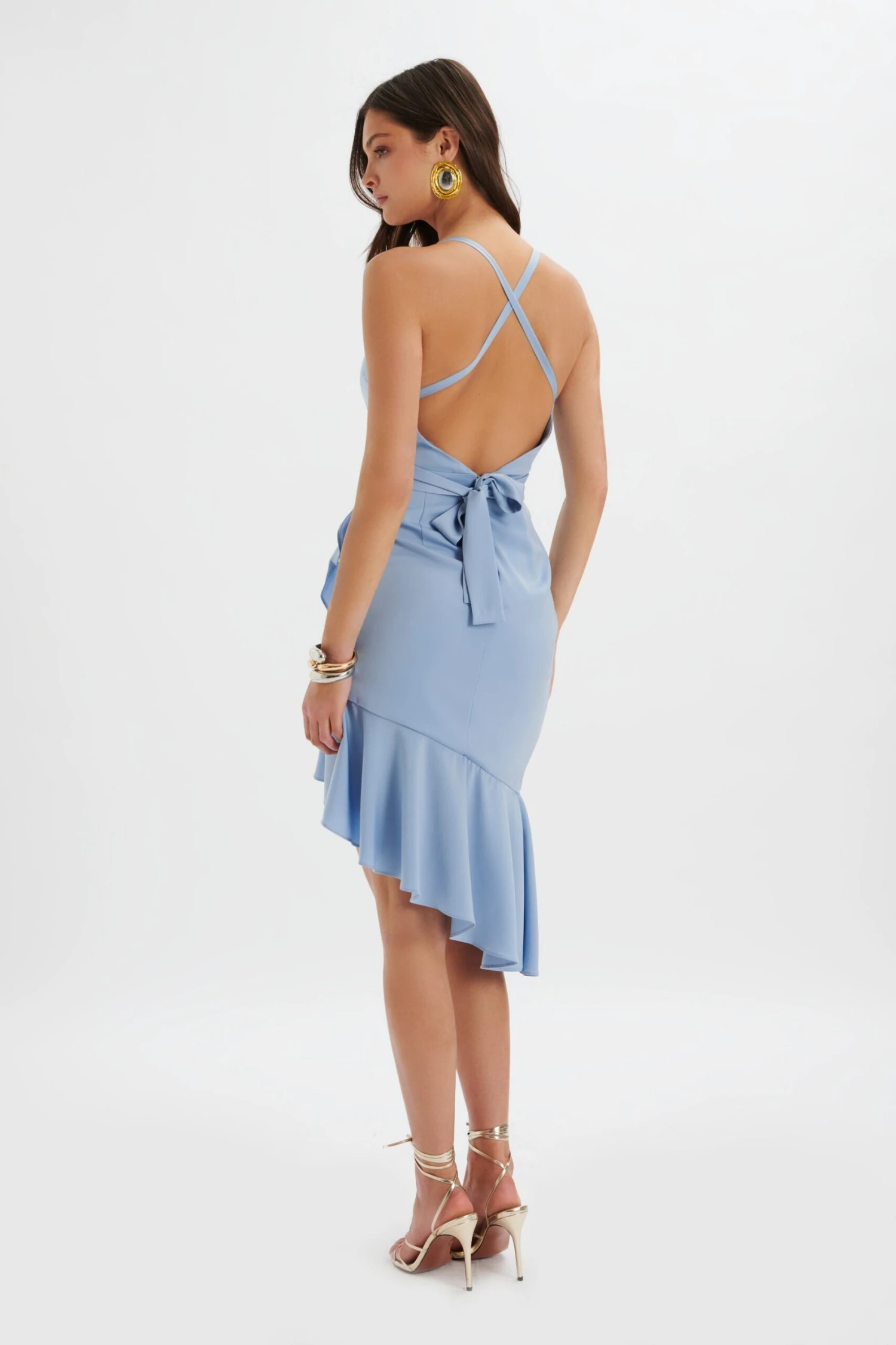 Soft and romantic, SAWYER gently skims your silhouette and flatters with a draped neckline. Ruffles fall delicately at the hemline creating a delicate yet glamorous look. RSVP’d to spring garden parties and weddings? This is the dress you need to make an entrance no matter the occasion.